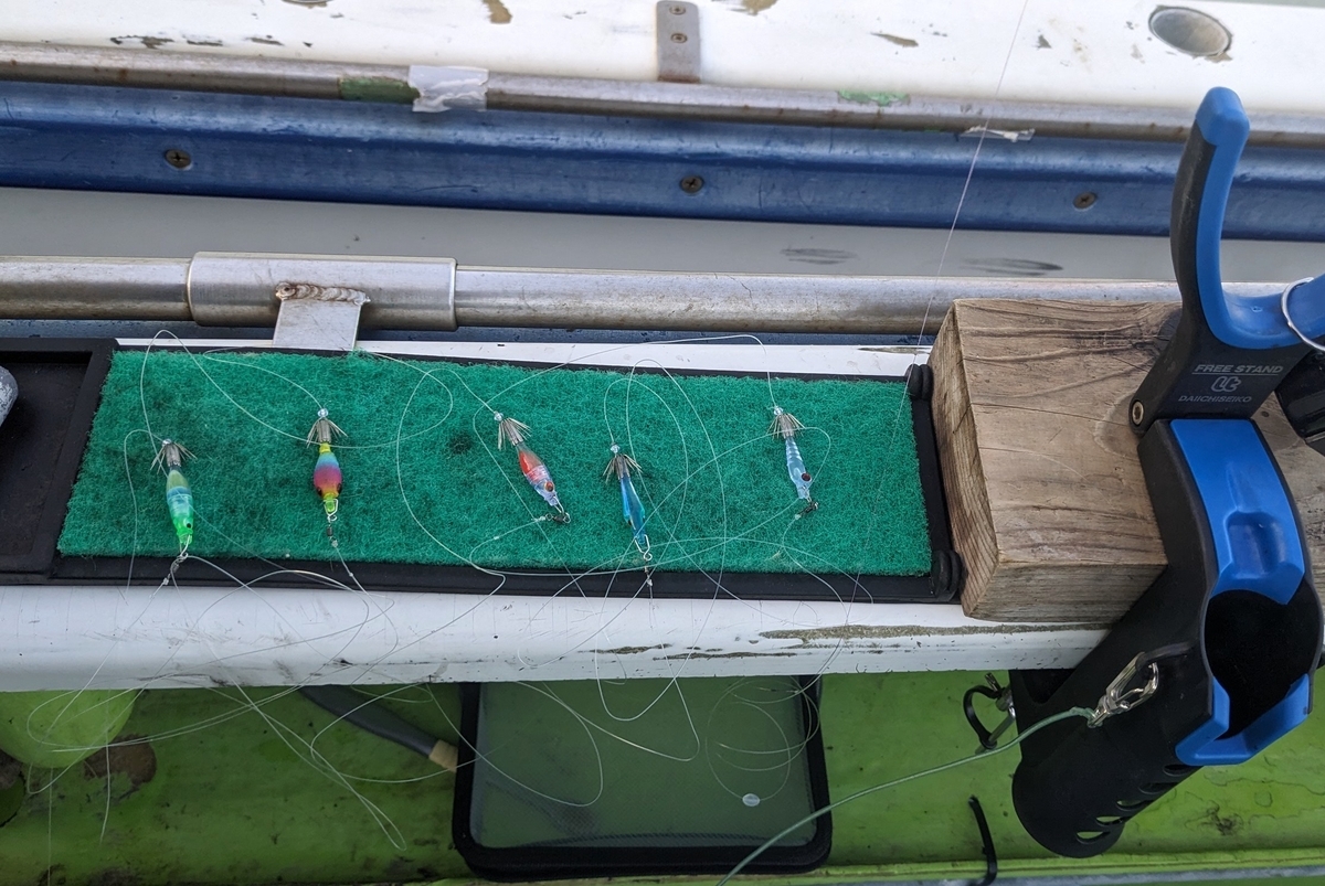 05:15に準備して船に移動。今回は二人とも4本スッテで開始です。